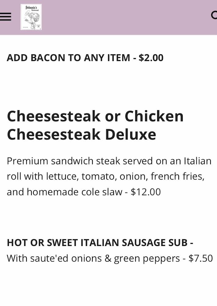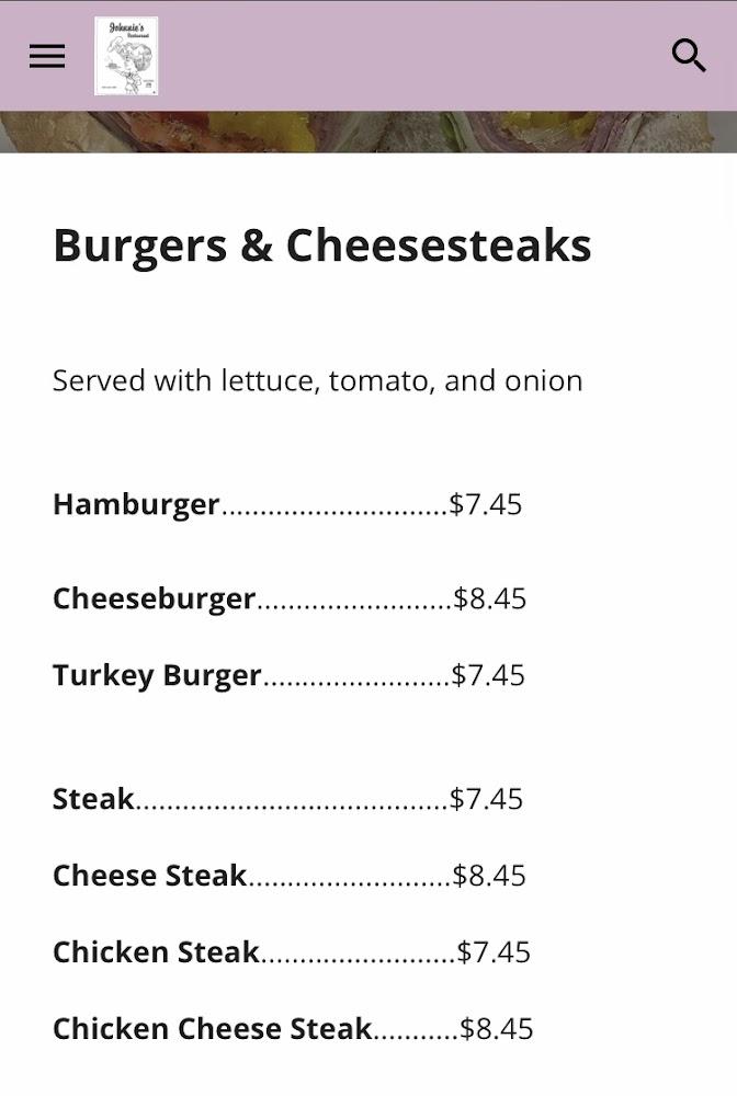 Desserts and beverages round out the offerings, ensuring a complete dining experience. Whether grabbing a quick bite or enjoying a leisurely meal, Johnnie's serves something satisfying for everyone.